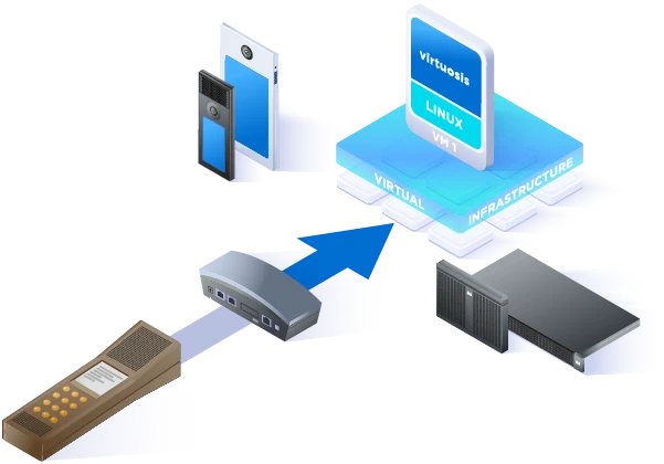 Avec nos produits, bénéficiez de cycles de vie exceptionnellement longs et d'une compatibilité ascendante inégalée. Le convertisseur IP de Commend permet aux appareils analogiques des années 1980 de se connecter sans problème à notre serveur VirtuoSIS de pointe, profitant même des derniers services cloud de Commend. Vous obtenez ainsi des coûts de remplacement du matériel durablement bas tout au long de la vie de votre système.
