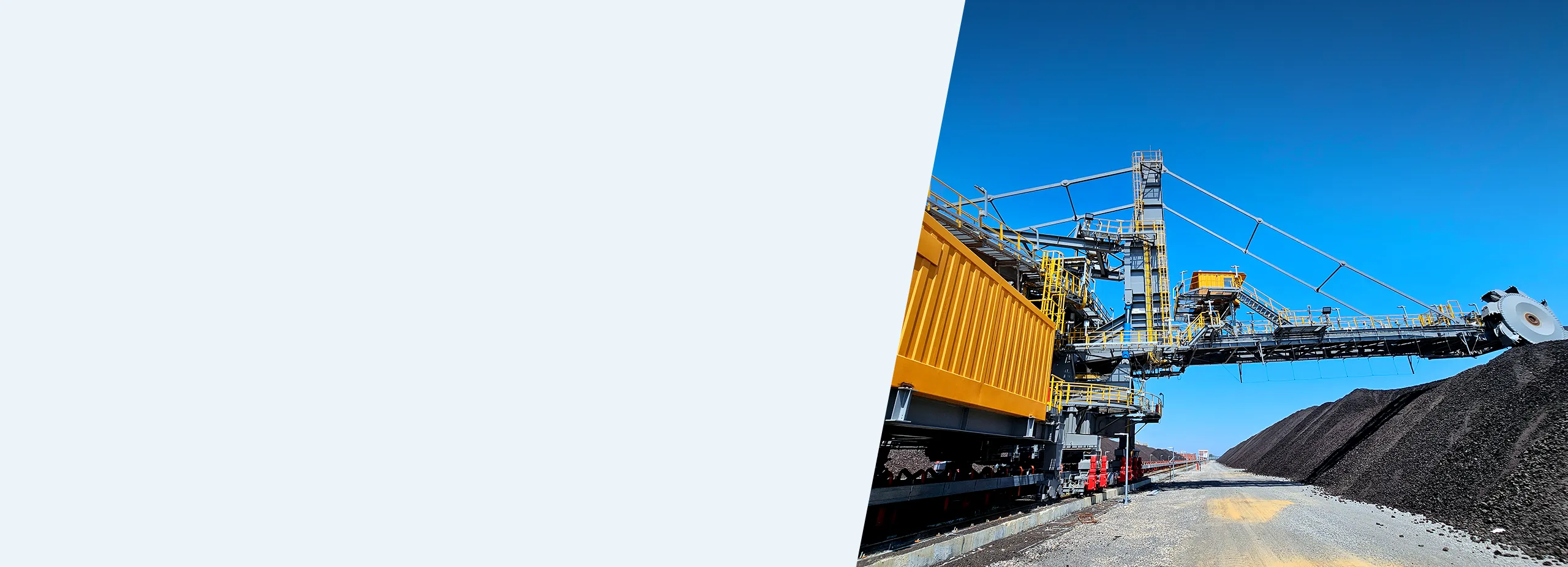 Large stacker with conveyor system in industrial operation