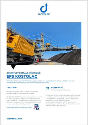 For the new TEKOB3-081-BWSR spreader at EPS Kostolac, we needed a robust and reliable communication system. Commend met all requirements – from sound quality to resistance to extreme working conditions. Implementation was precise, and the system works flawlessly. We are satisfied with both the technical solution and the support during execution.